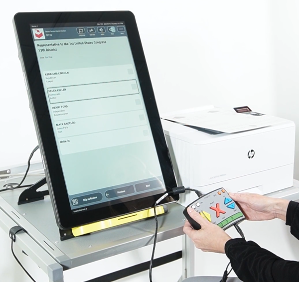 Also, there are a small handful of voting technology companies that have focused most of their energy on developing an accessible Windows interface for the voting process. Companies like Democracy Live have an enhanced voting system called OmniBallot. You can do a mock election. You can participate in the voting, but it is only available for specific approved groups and locations. For example, in Colorado we use the Democracy Live OmniBallot system not only for print disabled, but also for the uniform and overseas voters.